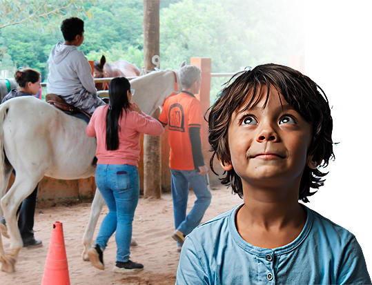 Nesta situação, o sujeito do processo participa de sua reabilitação, na medida em que interage com o cavalo.